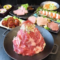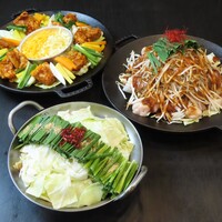 【もつ鍋×もつ焼き×チーズタッカルビ×マウンテン焼肉】全8品 自慢の4種から選べるメインコース鉄板焼きと九州料理3時間生ビール付飲み放題5000円(税込) 10名様から貸し切りOK!※金曜日120分制