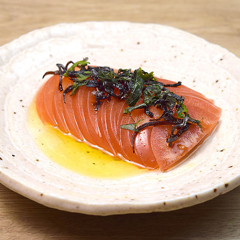 甘酸っぱいトマトをキンキンに。塩昆布オリーブでさっぱりと!