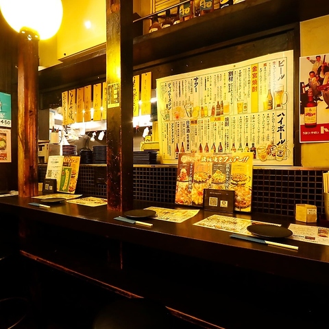 【カウンター】自分だけの特等席で、思いっきり楽しめます!当店ではカウンター席をご用意しており、お一人様でもゆったりとご利用いただけます。会社帰りにふらっとお立ち寄りください。サク飲みを楽しむもよし、しっぽりと過ごすもよし。気軽におしゃべりしながら、ゆったりした時間をお過ごしください。